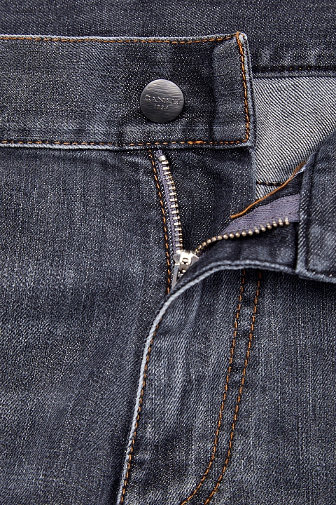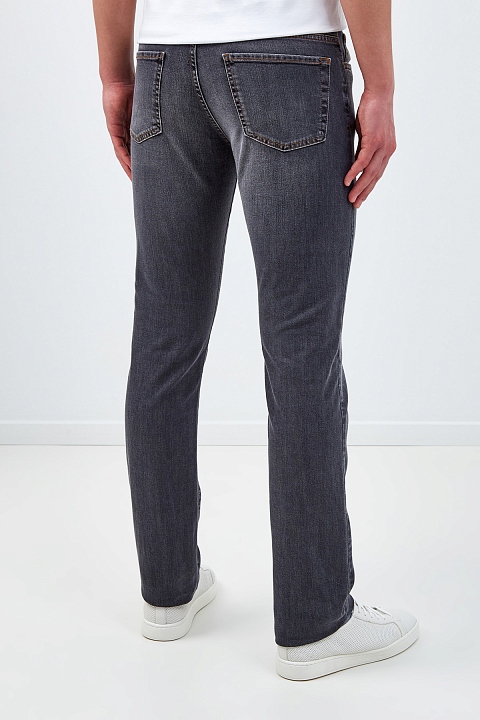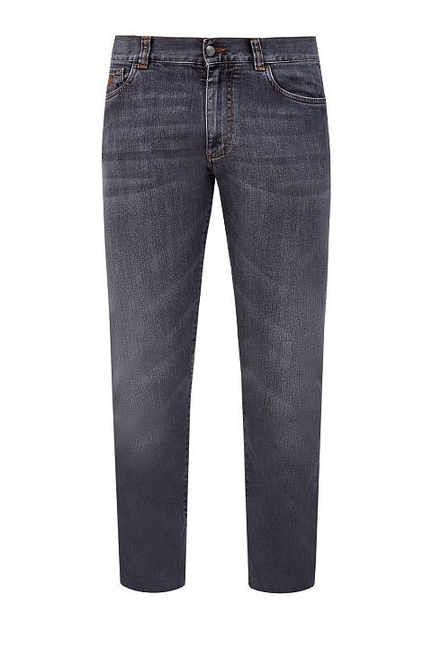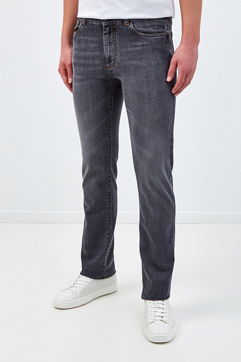 Джинсы прямого кроя от Canali из эластичного хлопкового денима в графитово-сером оттенке. Выверенный состав ткани обеспечивает максимальный комфорт в движении. Разводы и потертости на швах выполнены мастерами бренда вручную, что делает каждую модель уникальной. Детали: застежка на молнию и пуговицу, прострочка швов нитью табачного оттенка, нашивка из кожи на поясе. Сделано в Италии.