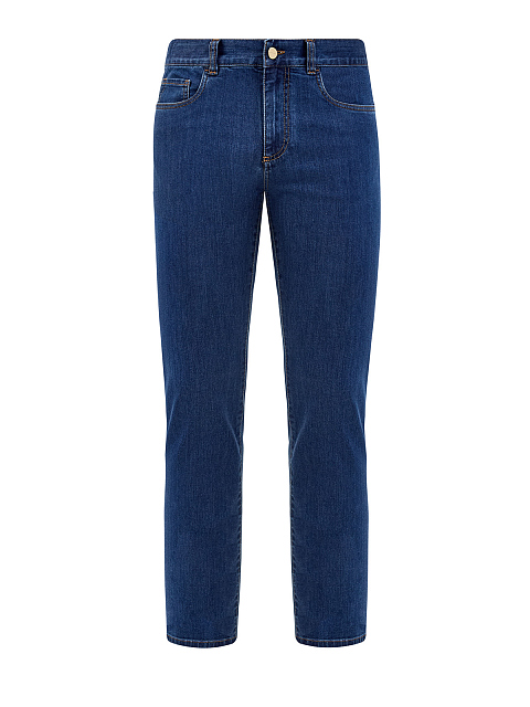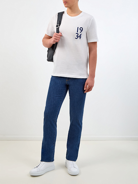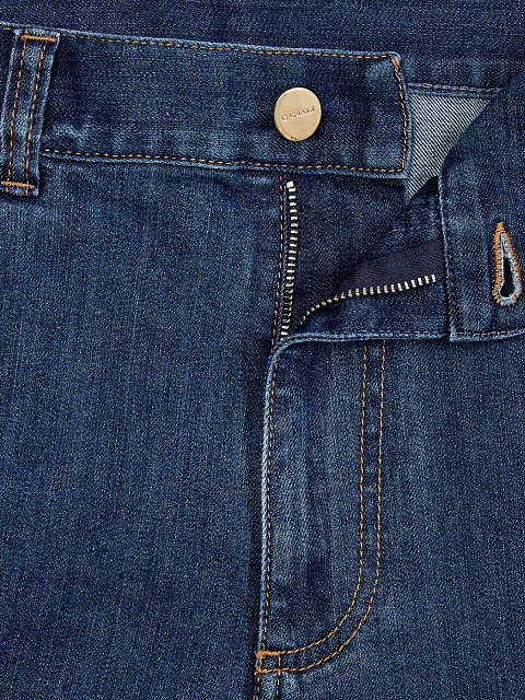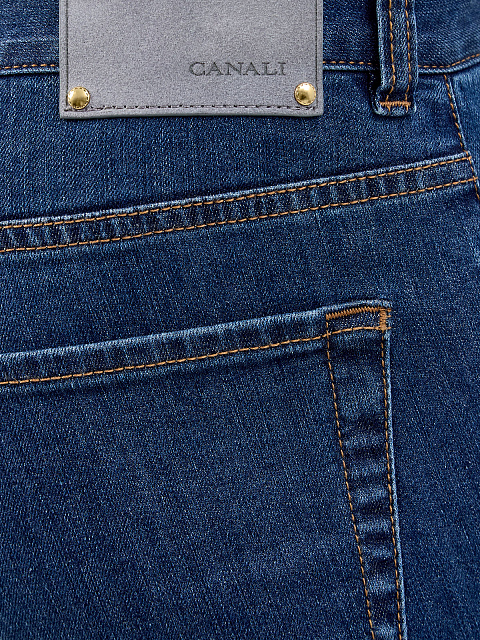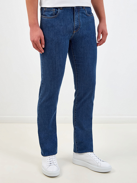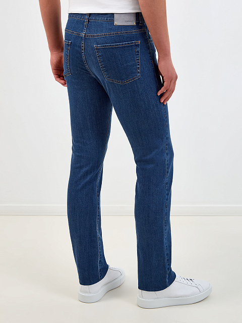 Джинсы ручной работы с нашивкой из замши и контрастной прострочкой
