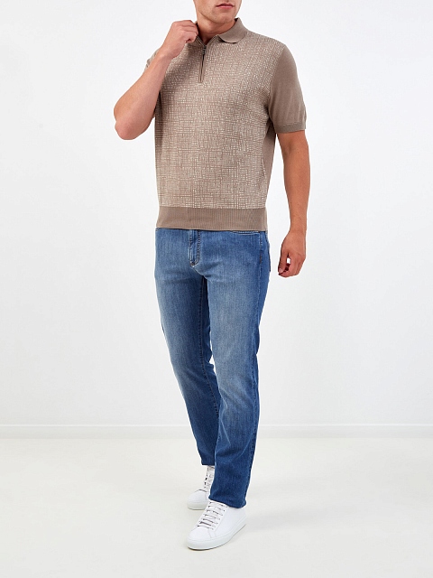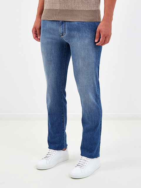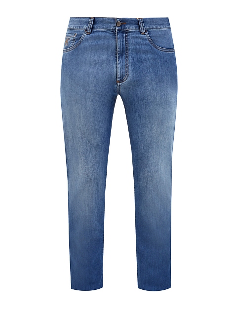 Мужские джинсы кроя skinny от Canali выполнены из эластичного денима с неоднородным выбеленным эффектом по поверхности. Модель в стиле casual с прострочкой швов нитями оттенка охры дополнена брендированной фурнитурой и нашивкой из сафьяновой кожи на поясе. Детали: пять карманов, застежка на молнию и пуговицу, вышитый логотип бренда. Сделано в Италии.