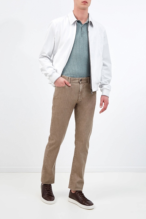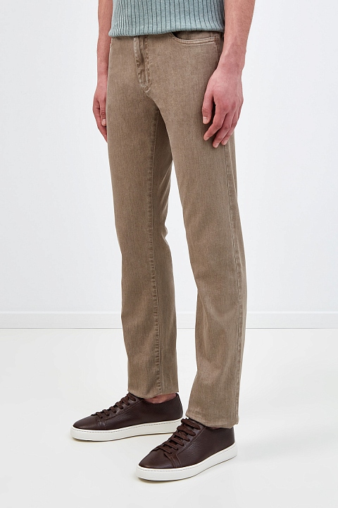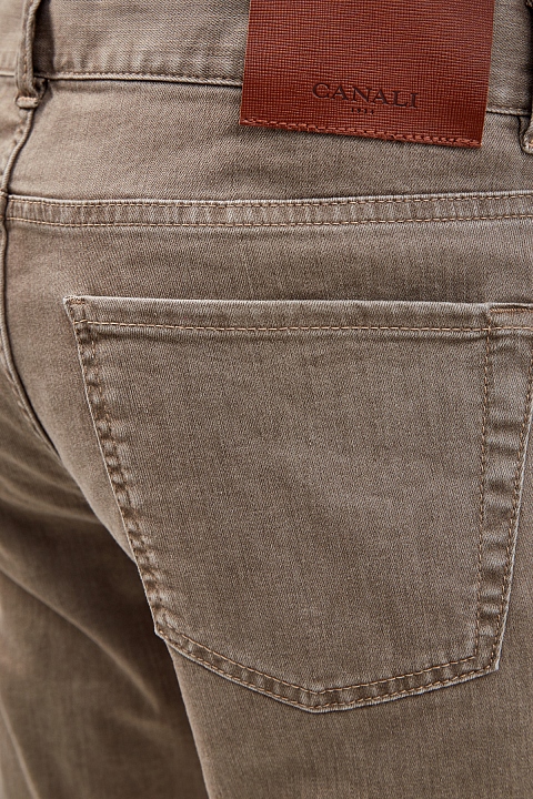 Базовые мужские джинсы от Canali созданы из эластичного денима stretch, который сохраняет комфорт в движении. Модель выполнена в песочно-бежевом оттенке, лаконичный дизайн дополнен прострочкой швов нитью в тон. Детали: прямой крой, традиционные пять карманов, вышитый логотип, нашивка из кожи на поясе, застежка на пуговицу и молнию. Сделано в Италии.