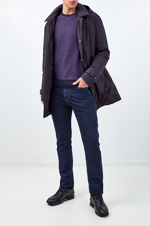 Минималистичные джинсы от Canali выполнены из комфортного денима Stretch — благодаря выверенному составу модель не стесняет движений. Глубокий, слегка неоднородный оттенок индиго достигнут мастерами бренда вручную. Контрастные швы и нашивка на поясе из фактурной кожи визуально структурируют образ. Детали: пуговица с ручной гравировкой, низкая посадка. Сделано в Италии.