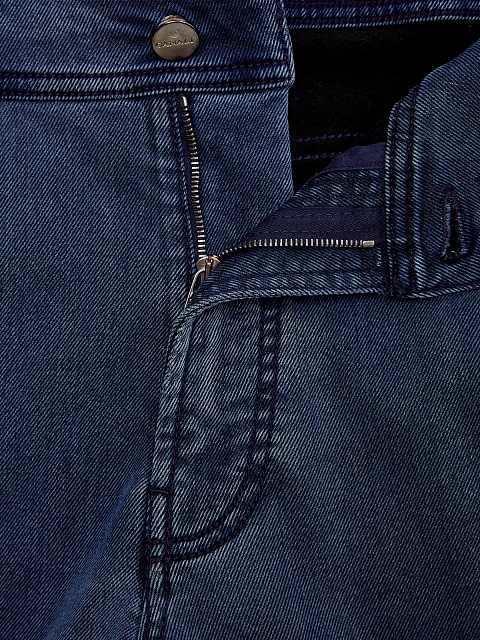 Мужские джинсы от Canali выполнены из мягкого лиоцелла — плотная эластичная ткань с утепленной внутренней поверхностью делает модель идеальной основой для создания повседневных аутфитов. Классический синий оттенок с легким выбеленным эффектом достигнут мастерами бренда вручную, расслабленный акцент в образ вносит нашивка из замши на поясе и прострочка швов нитью оттенка индиго. Детали: пять карманов, застежка на молнию и пуговицу на передней планке. Сделано в Италии.