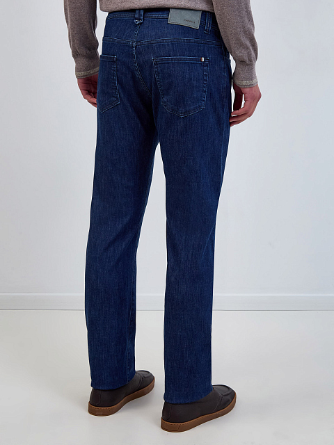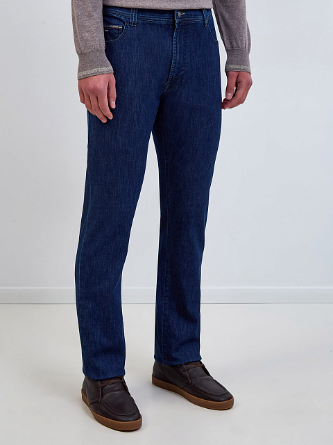 Джинсы прямого кроя с нашивкой из замши на поясе