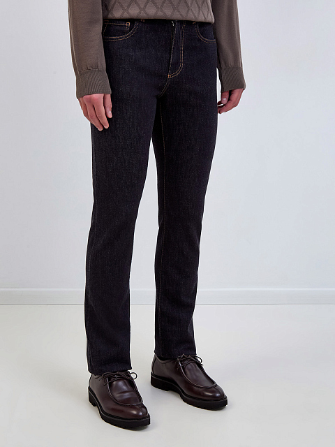 Джинсы из хлопка и шерсти с контрастной прострочкой