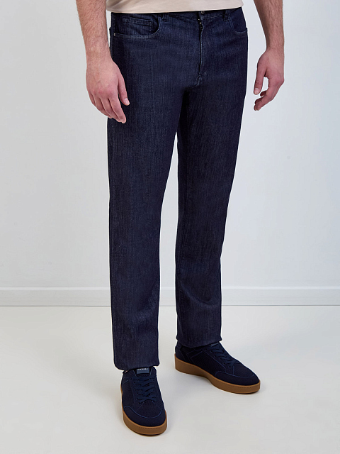 Джинсы-slim из хлопка и модала с нашивкой из гладкой кожи