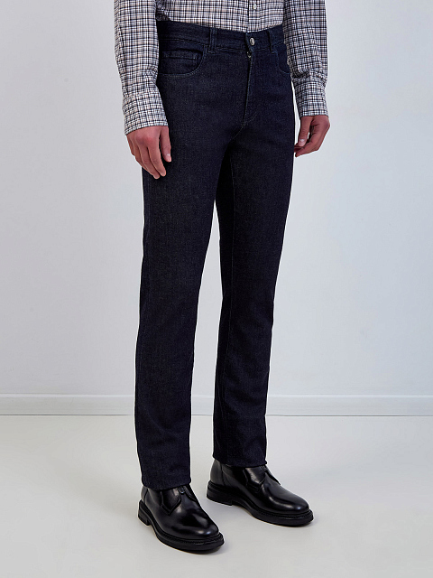 Джинсы из хлопка, кашемира и шелка с кожаной нашивкой