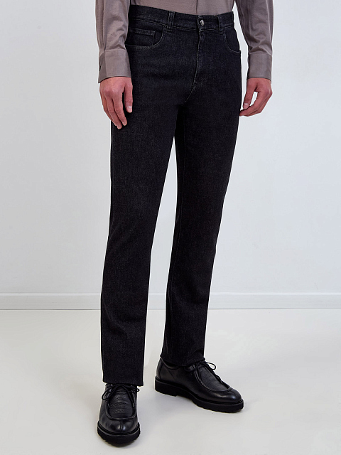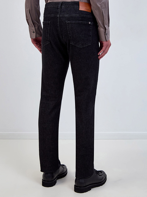 Джинсы с волокнами кашемира и патчем из кожи на поясе