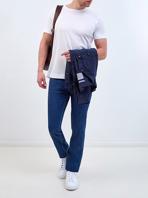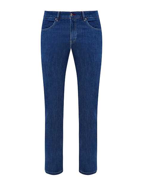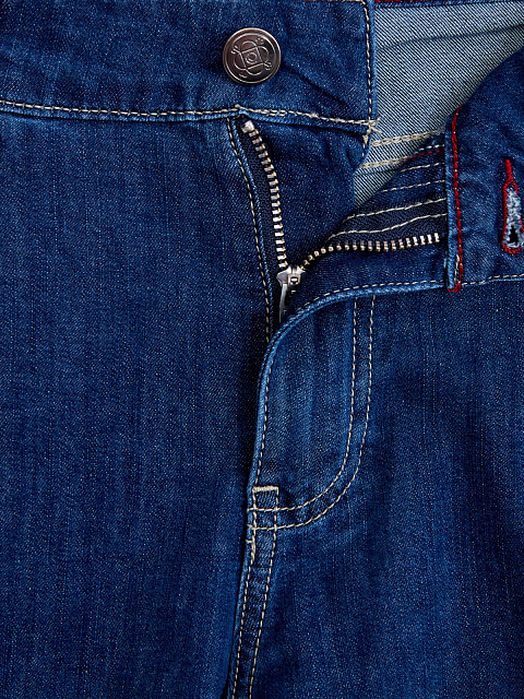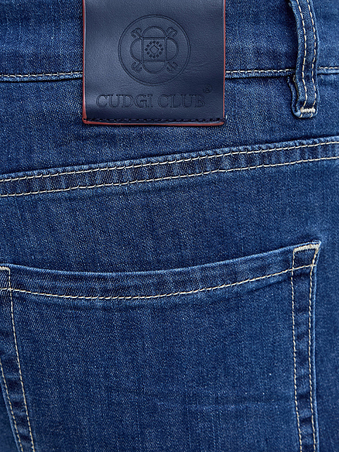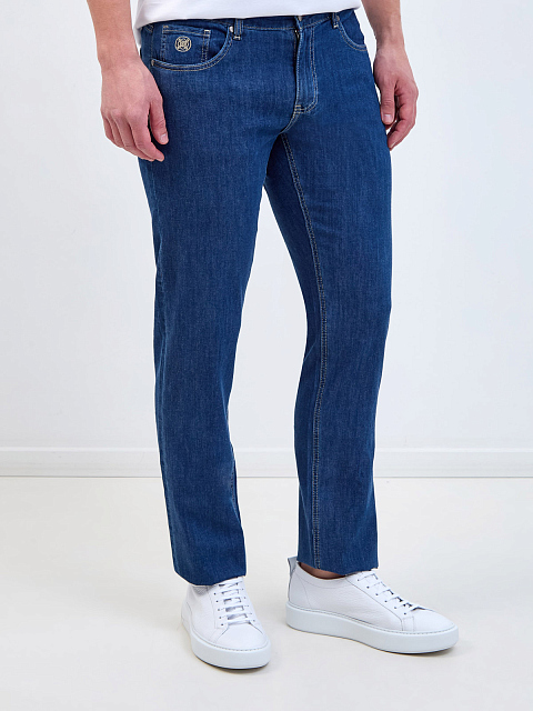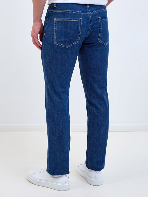 Джинсы из эластичного денима с контрастной прострочкой и нашивкой