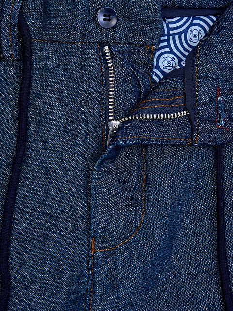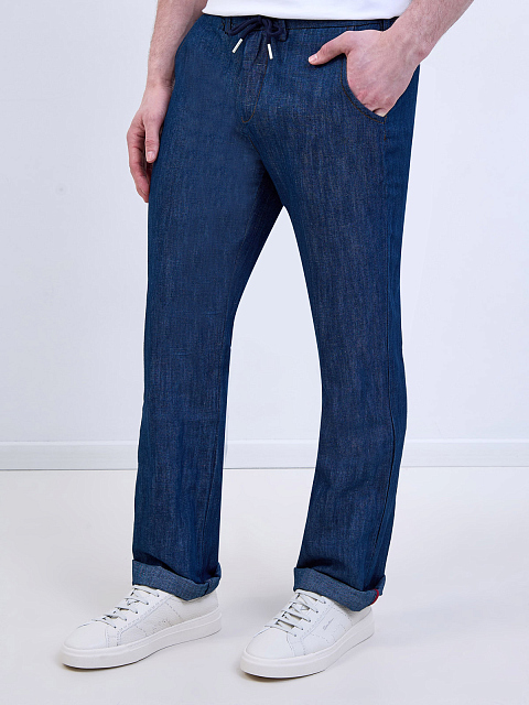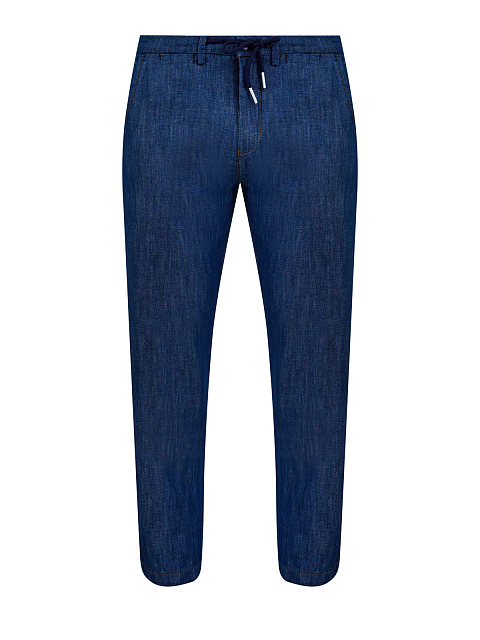 Джинсы из льна и хлопка с кулиской и контрастной прострочкой