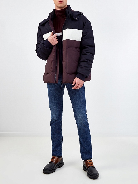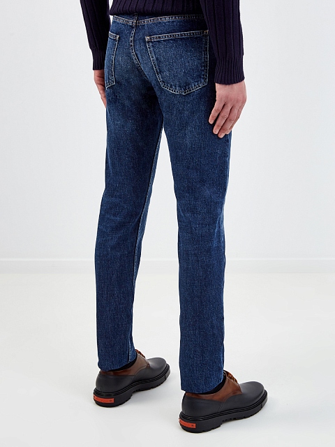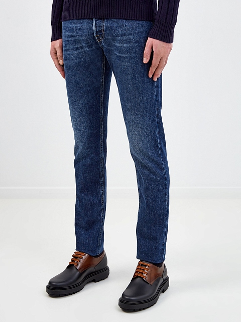 Джинсы-slim из денима с контрастной прострочкой