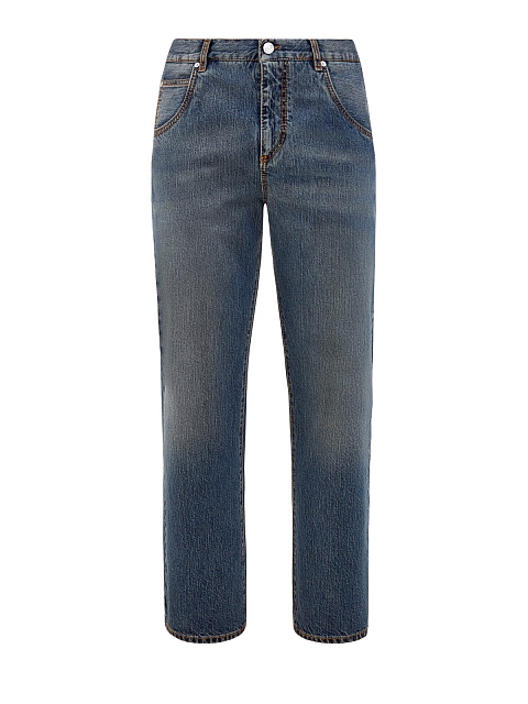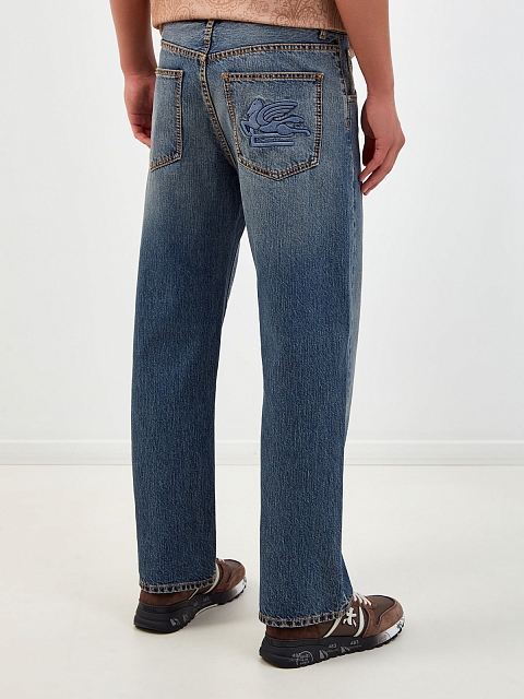 Свободные джинсы с контрастной прострочкой и вышитым логотипом