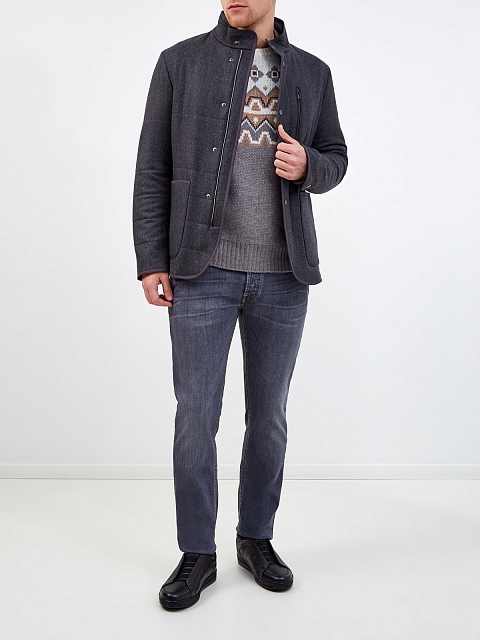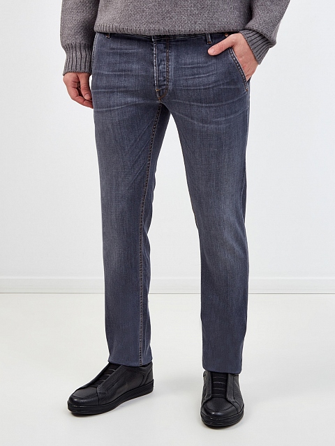Серые джинсы Parma с диагональными карманами и вышивкой