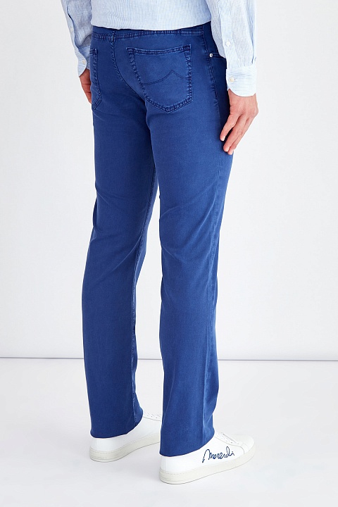 Мужские джинсы прямого кроя от Jacob Cohen выполнены из эластичного денима с добавлением лиоцелла — прошедших нано-обработку волокон эвкалиптового дерева. Выверенный состав делает ткань тактильно приятной и комфортной в движении. Изделие дополнено заклепками с матовым покрытием в тон. Детали: нашивка из меха пони с полимерной вставкой, пять карманов. Сделано в Италии.