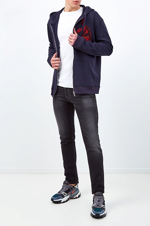 Джинсы кроя slim от Jacob Cohen созданы мастерами бренда вручную из хлопкового денима графитово-серого оттенка. Ткань с выверенным составом остается комфортной в движении. Модель с достигнутым вручную эффектом высветления дополнена фирменной фурнитурой с серебряным напылением Silver-plated. Детали: вышивка на карманах ручной работы, контрастная нашивка из меха пони и лента для фиксации ремня на поясе. Сделано в Италии.