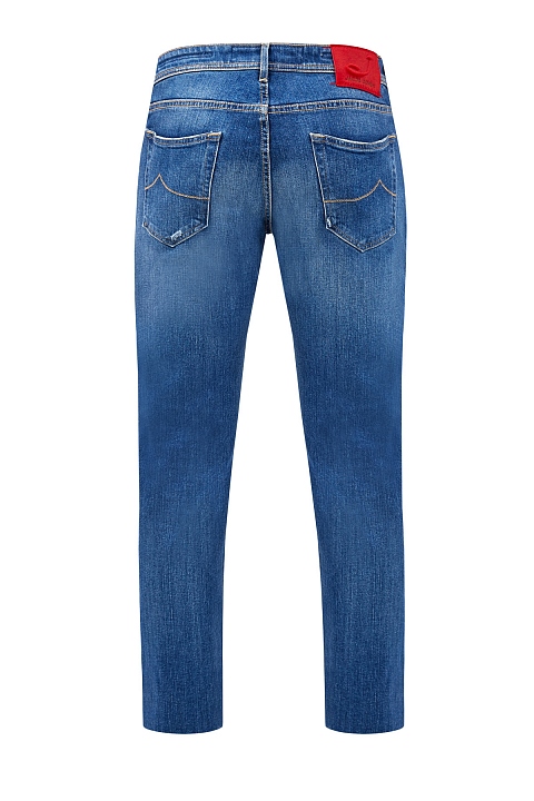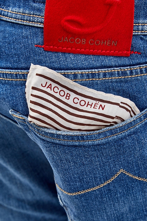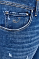 Джинсы в стиле casual от Jacob Cohen выполнены из плотного японского денима kurabo. Окрашивание с эффектом потертости и выполненные вручную прорези подчеркивают неформальный стиль. Контрастная прострочка швов и нашивка из меха пони на поясе вносят дополнительные цветовые акценты. Фирменный штрих — напыление Silver-plated из серебра на фурнитуре. Детали: пять карманов, низкая посадка. Сделано в Италии.