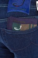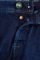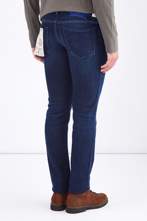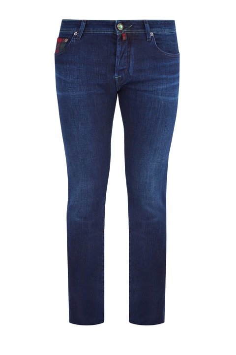 Классические мужские джинсы Jacob Cohen комфортного кроя slim 622 выполнены вручную из износостойкого японского хлопкового денима Kurabo, окрашенного в глубокий синий цвет натуральным красителем Индиго без применения химических веществ. Модель выполнена из ткани с особой ароматической пропиткой и добавлением эластичных волокон для повышения износостойкости и идеальной посадки по фигуре. Оформление швов двойной прострочкой нитями изумрудного тона сочетается с оттенком нашивки из меха пони на конструктивном поясе, внутренней клетчатой отделкой и кармашком для монет из фланели. Фурнитура из металла с серебряным гальваническим напылением «Silver-plated» декорирована фирменной символикой бренда и цветной эмалью. Хлопковый платок для ухода за металлическими элементами и флакон с эксклюзивным ароматом изделия предоставляются в комплекте. Сделано в Италии.