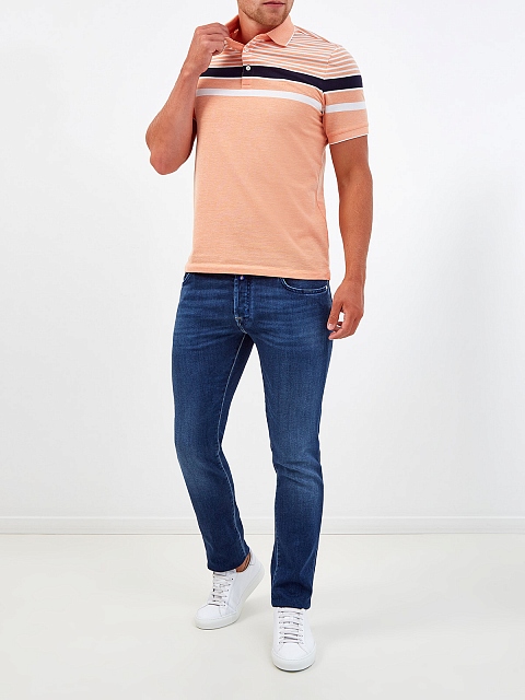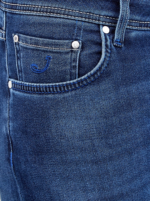 Джинсы зауженного кроя slim от Jacob Cohen созданы из эластичного хлопкового денима kurabo, облегающий крой сохраняет комфорт в движении за счет выверенного состава. Цветовые акценты в образ вносят прострочка швов контрастными нитями и петля для фиксации ремня. Детали: фурнитура с покрытием silver-plated из серебра, ароматизированный деним, застежка на пуговицы. Сделано в Италии.
