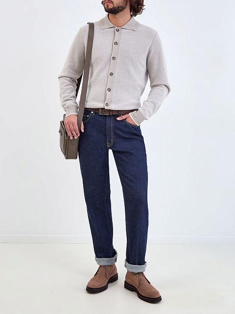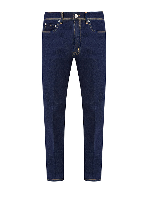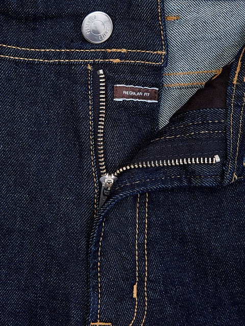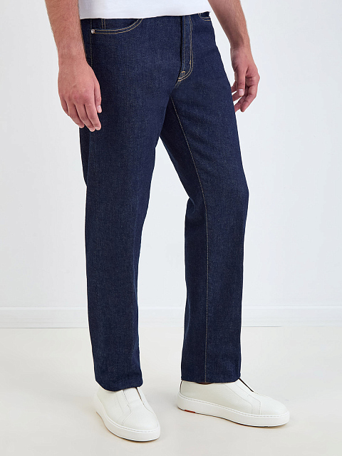 Джинсы Regular Fit с контрастной прострочкой и нашивкой из кожи