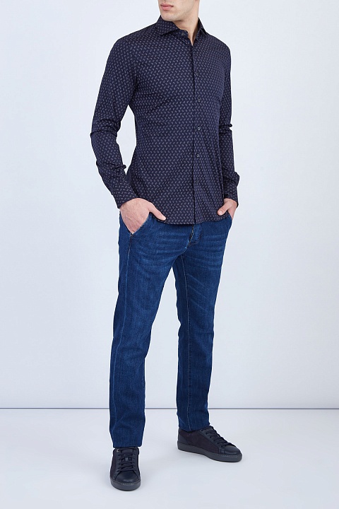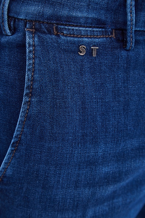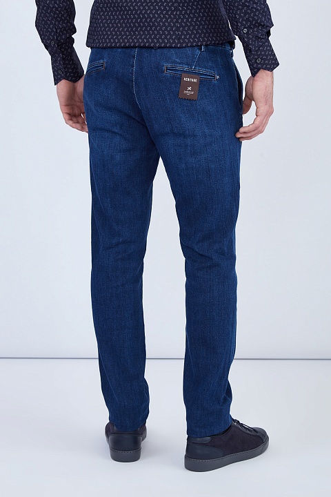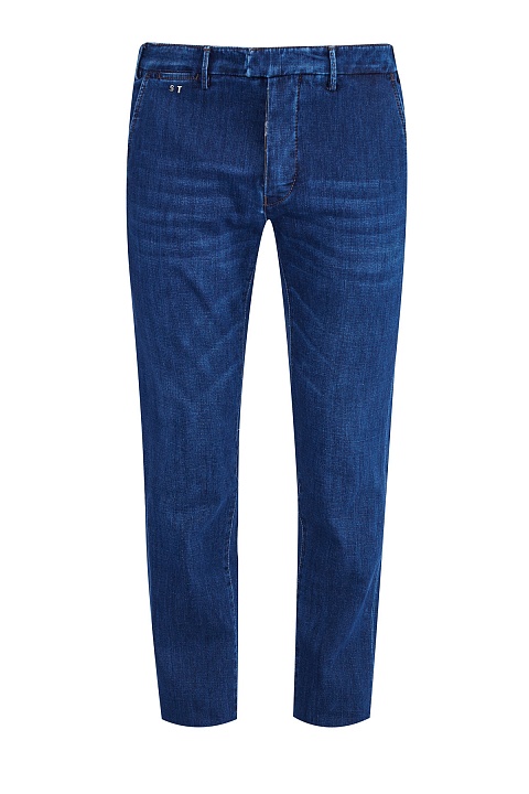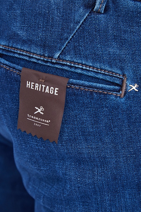 Базовые мужские джинсы зауженного кроя «Luis» от Sartoria Tramarossa выполнены из эластичного денима kurabo в насыщенном синем оттенке с выбеленными участками, полученными в процессе специальной технической стирки. Детали: заимствованные у классических брюк диагональные карманы и пояс, застежка на литые пуговицы, индивидуальная маркировка металлическими инициалами обладателя в момент покупки, нашивка с автографами всех, кто участвовал в их создании. Сделано в Италии.