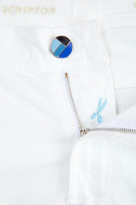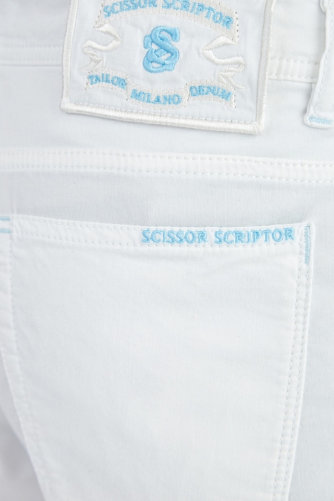 Однотонные мужские джинсы Scissor Scriptor прямого кроя «Costantino» выполнены вручную. Тонкий и дышащий деним на основе хлопка дополнен эластичными волокнами, благодаря которым ткань не стесняет движений. Нашивка на поясе и карман для монет декорированы вышитой в объемной технике символикой бренда. Отполированная вручную фурнитура дополнена вставками из глянцевой эмали. Сделано в Италии.