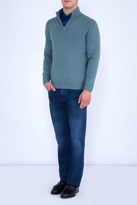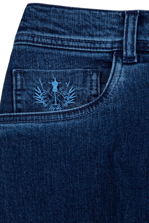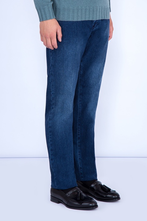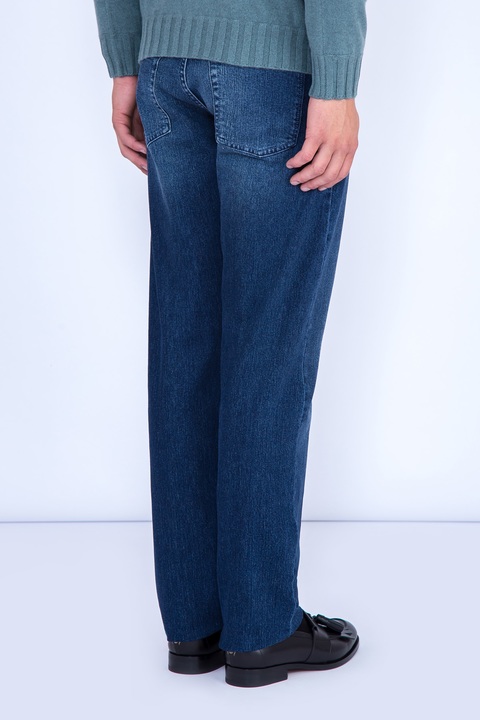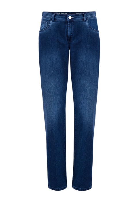 Классические мужские джинсы Scissor Scriptor классического прямого кроя «Costantino» выполнены в лучших традициях Модного дома — из хлопкового денима с примесью шерсти, обработанных по особой технологии мастеров марки. Благодаря утеплению оборотная сторона изделия имеет ворсистую поверхность, приятную телу. Модель характеризуется посадкой на талии на притачном поясе с кожаным лейблом и пятью карманами с отсрочкой нитью в тон. Задний карман и карман для монет декорированы искусной вышивкой с символикой бренда. Застежка осуществляется на ажурную пуговицу. Сделано в Италии.