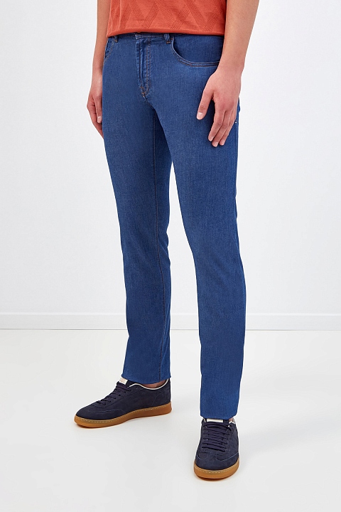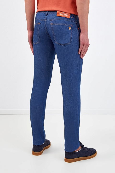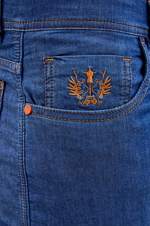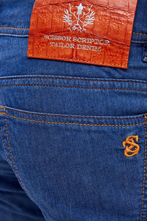 Мужские джинсы из легкого и эластичного денима kurabo от Scissor Scriptor. Модель в стиле casual с контрастной двухцветной прострочкой швов и фурнитурой с матовым покрытием. Качество Made in Italy подчеркивает вышивка ручной работы с фирменной символикой, а нашивка из фактурной кожи аллигатора на поясе ассоциируется с присущей бренду роскошью. Застежка на пуговицу и молнию завершает дизайн. Сделано в Италии.