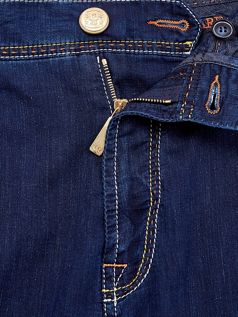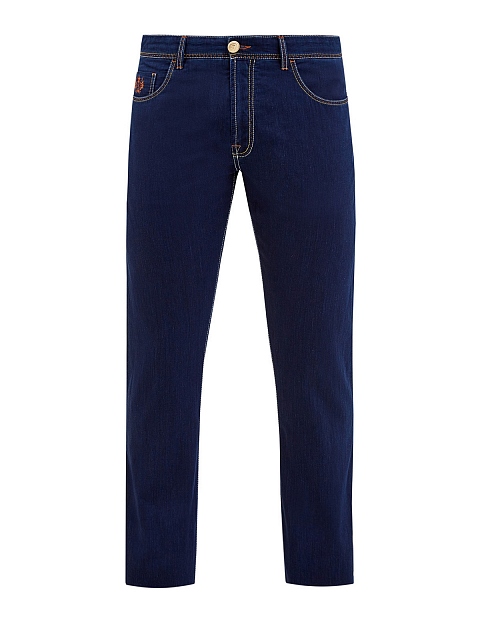 Мужские джинсы кроя Cesare от Scissor Scriptor традиционно созданы из японского денима Kurabo, окрашивание ручной работы придает материалу легкий неоднородный эффект. Двухцветная прострочка швов, нашивка из тисненой кожи на поясе и фирменная вышивка придают изделию расслабленный акцент. Детали: пять карманов, застежка на молнию и пуговицу, литая фурнитура. Сделано в Италии.