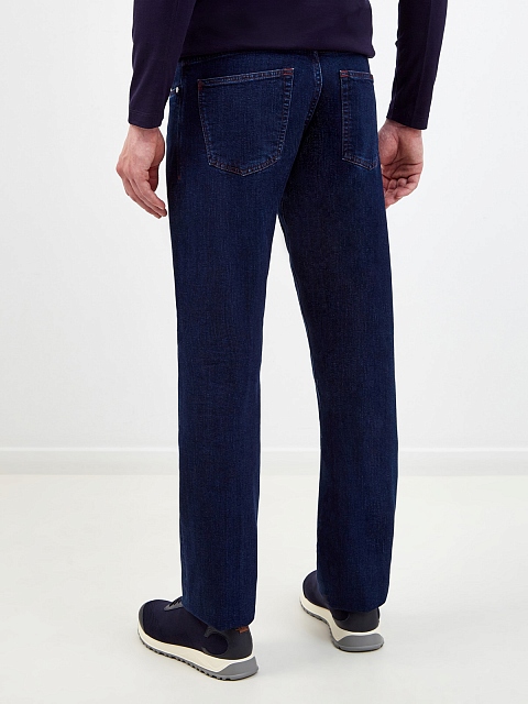 Джинсы кроя Cesare от Scissor Scriptor выполнены из японского денима Kurabo — хлопковая ткань с добавлением волокон кашемира делает модель идеальной основой для создания повседневных аутфитов. Классический синий оттенок достигнут мастерами бренда вручную, расслабленный акцент в образ вносит вышитый логотип бренда и контрастная прострочка швов. Детали: пять карманов, фигурная фурнитура. Сделано в Италии.