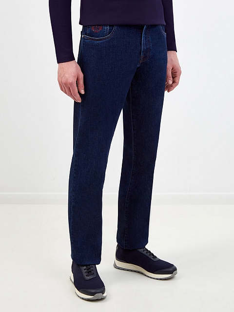 Окрашенные вручную джинсы Cesare с вышитым логотипом