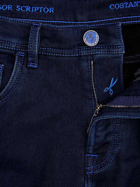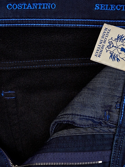 Стильные джинсы прямого кроя Costantino от Scissor Scriptor созданы из японского денима Kurabo с мягкой утепляющей прослойкой. Окрашивание ручной работы придает швам легкий неоднородный эффект. Брендированная фурнитура, контрастная прострочка и фирменная вышивка вносят в образ расслабленный акцент. Детали: пять карманов, застежка на молнию и пуговицу на передней планке. Сделано в Италии.