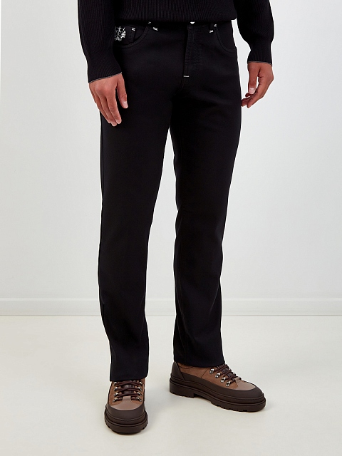 Джинсы с контрастной отделкой и нашивкой из замши