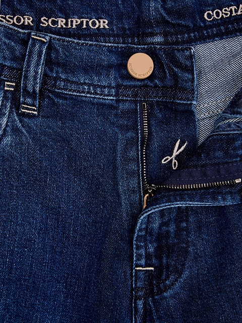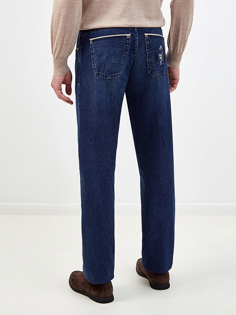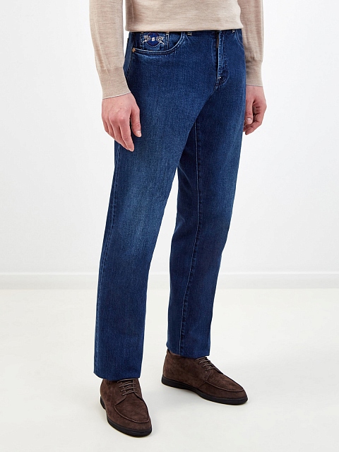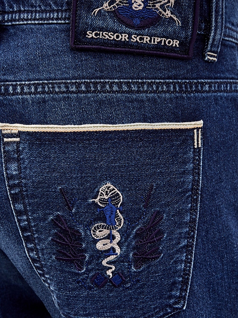 Стильные джинсы прямого кроя Costantino от Scissor Scriptor традиционно созданы из японского денима Kurabo, окрашивание ручной работы придает швам легкий неоднородный эффект. Брендированная фурнитура, контрастная отделка и фирменная вышивка придают изделию расслабленный акцент. Детали: пять карманов, застежка на молнию и пуговицу на передней планке. Сделано в Италии.
