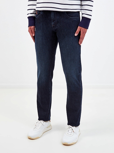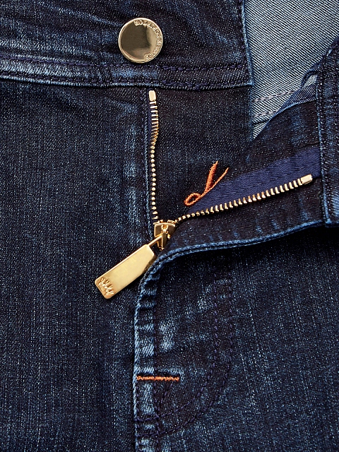 Однотонные джинсы прямого кроя Constantino от Scissor Scriptor выполнены вручную. Тонкий хлопковый деним kurabo обеспечивает максимальный комфорт в движении. Прострочка швов контрастного тона перекликается с цветовым исполнением кожаной нашивки на поясе. Детали: пять карманов, глянцевая фурнитура с золотистым напылением. Сделано в Италии.