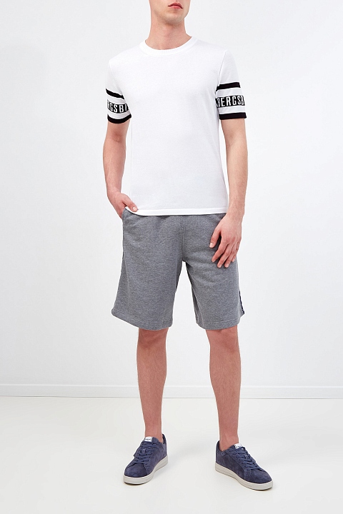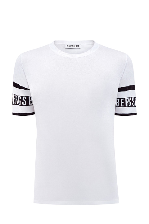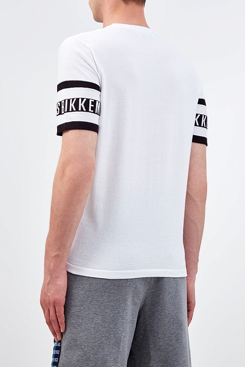 Мужская футболка в стиле casual от Bikkembergs выполнена из натурального хлопка в базовом белом цвете. Мягкий и дышащий материал изделия идеально подходит для летнего сезона. Контрастный интарсийный принт на рукавах с монограммой бренда делает образ динамичным. Футболка гармонично сочетается с джинсами, брюками и шортами от спортивного стиля до smart-casual. Детали: круглый вырез горловины, короткие рукава, прямой крой.