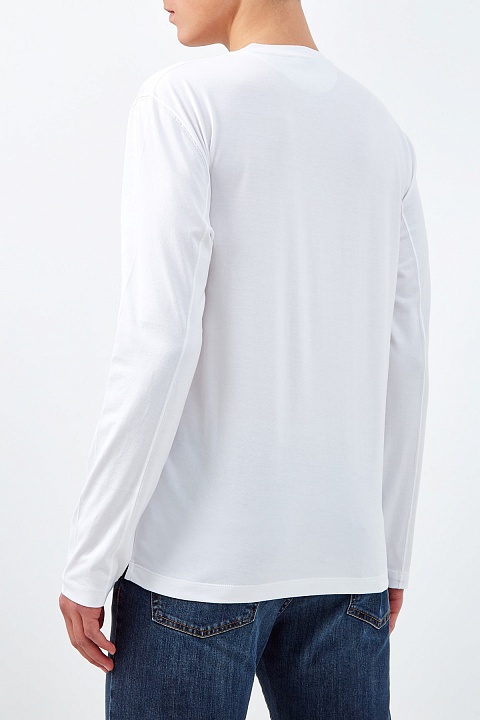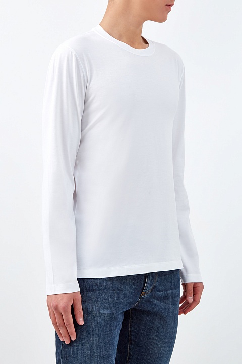 Лонгслив в стиле минимализм от Brunello Cucinelli. Базовая модель выполнена в универсальном белоснежном цвете из джерси — однородные волокна собранного вручную хлопка образуют гладкую фактуру и благородный блеск. Дышащая и гигроскопичная ткань обеспечивает полную свободу движений, делая повседневный образ еще более комфортным. Сделано в Италии.