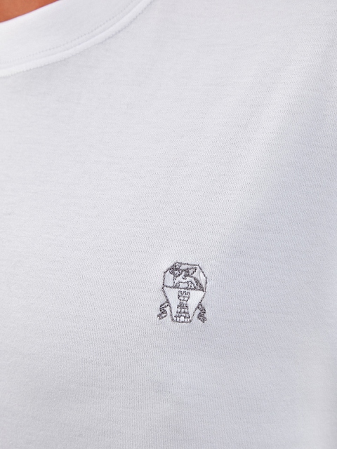 Минималистичная мужская футболка от Brunello Cucinelli выполнена из мягкого джерси в белоснежном оттенке — однородные волокна собранного вручную хлопка образуют гладкую фактуру ткани. Вышитый логотип подчеркивает расслабленный стиль изделия. Детали: короткие рукава, прямой нижний край, круглый вырез горловины. Сделано в Италии.