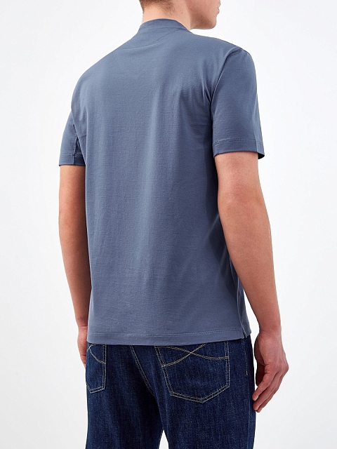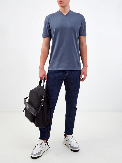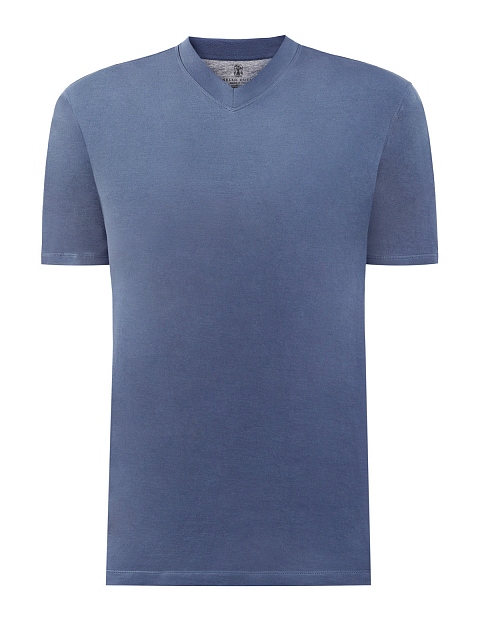 Минималистичная мужская футболка от Brunello Cucinelli выполнена из гладкого хлопкового джерси. Дышащий материал с полностью натуральным составом идеально подходит для создания повседневных образов. Детали: V-образный вырез горловины, короткие рукава, простроченные швы. Сделано в Италии.