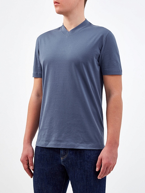 Однотонная футболка из джерси с V-образным вырезом
