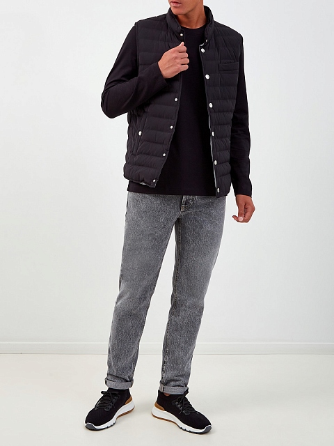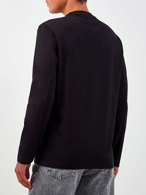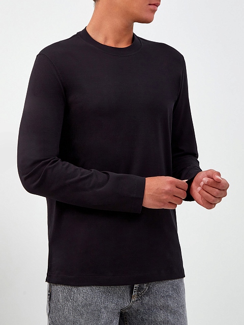 Лонгслив в стиле минимализм от Brunello Cucinelli. Базовая модель выполнена в универсальном черном цвете из джерси — однородные волокна собранного вручную хлопка образуют гладкую фактуру и благородный блеск. Дышащая и гигроскопичная ткань обеспечивает полную свободу движений, делая повседневный образ ещё более комфортным. Сделано в Италии.