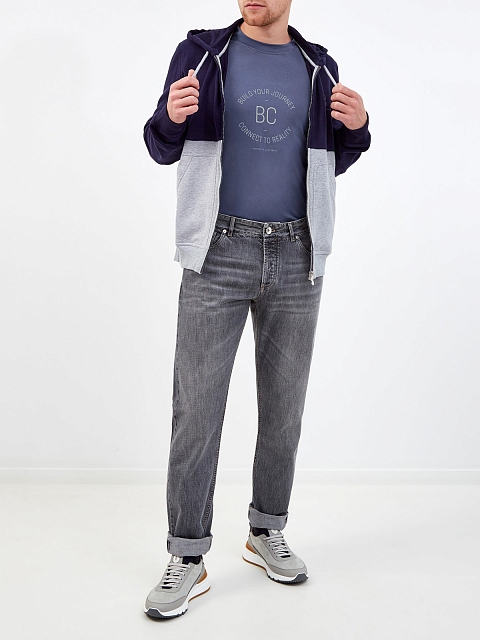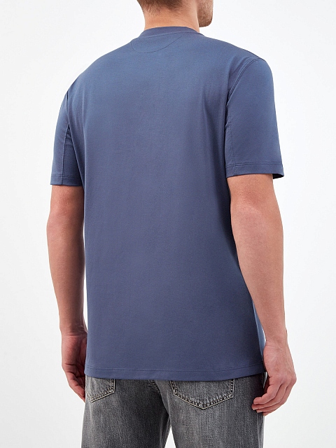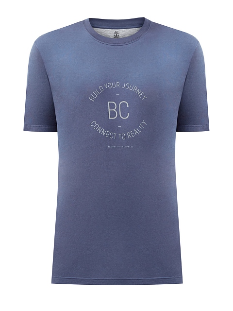 Мужская футболка от Brunello Cucinelli выполнена из гладкого джерси в приглушенном синем оттенке. Дышащий материал с полностью натуральным составом идеально подходит для создания повседневных образов, минималистичный принт Build Your Journey отражает философию Модного Дома. Детали: круглый вырез горловины, короткие рукава, простроченные швы. Сделано в Италии.
