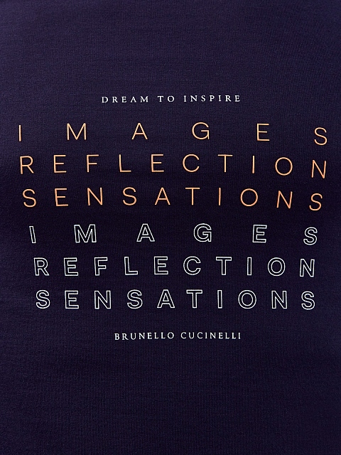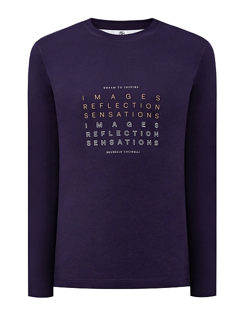 Мужской лонгслив в оттенке ночного неба от Brunello Cucinelli создан из натурального хлопкового джерси — однородные волокна образуют гладкую фактуру и благородный блеск. Дышащая и гигроскопичная ткань обеспечивает максимальный комфорт в движении. Минималистичный принт в стиле леттеринг отражает философию Модного Дома. Сделано в Италии.