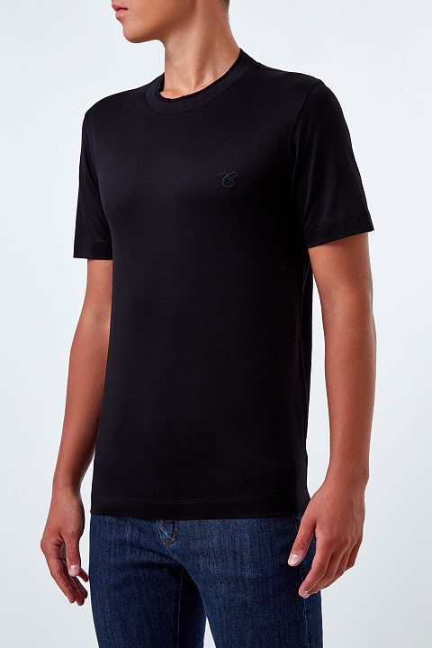Минималистичная футболка от Canali выполнена из тонкого хлопка в черном цвете. Специальная технология обработки позволяет получить гладкую поверхность с мягким сатиновым блеском. Кромка горловины с двойной отделкой создает эффект многослойного образа. Вышитый логотип бренда завершает дизайн. Сделано в Италии.