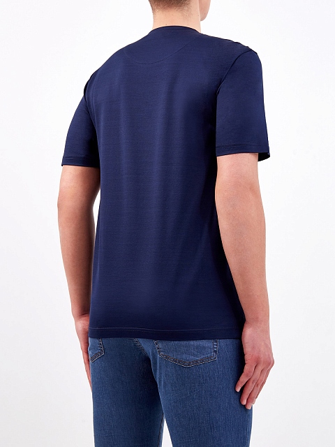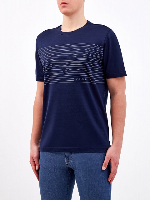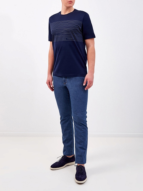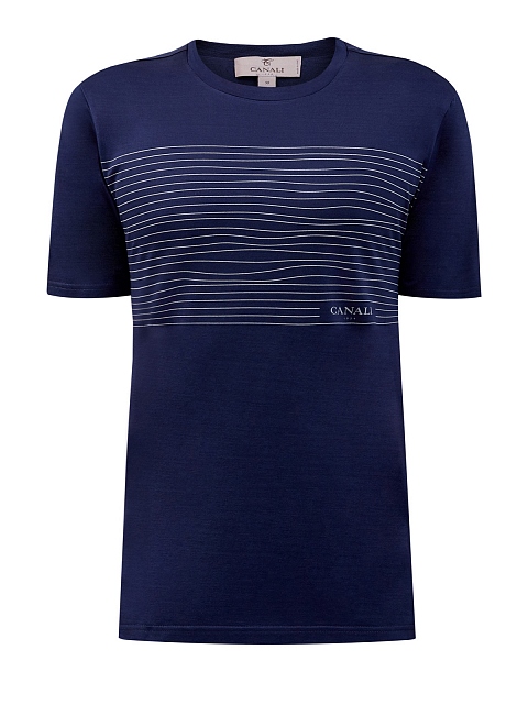 Базовая мужская футболка от Canali. Изделие в темно-синем оттенке дополнено принтом-аппликацией с монограммой бренда. Хлопковый джерси делает повседневные образы максимально комфортными и особенно актуален в летний сезон. Детали: посадка по фигуре, короткие рукава, круглый вырез. Сделано в Италии.