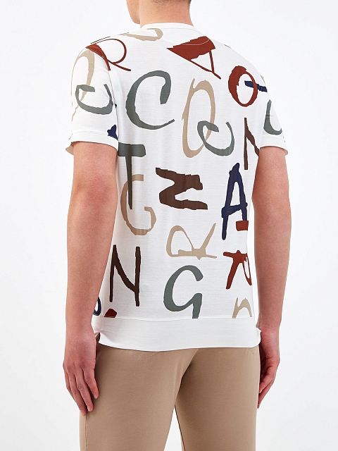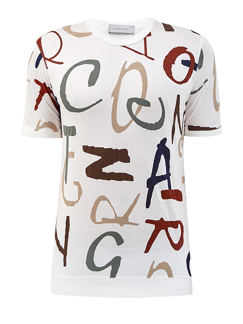 Мужская футболка от Cortigiani выполнена из гладкого джерси в лаконичном молочном оттенке. Дышащий материал с полностью натуральным составом идеально подходит для создания повседневных образов. Сплошной макро-принт в стиле леттеринг подчеркивает неформальный характер изделия. Детали: круглый вырез горловины, короткие рукава, простроченные швы. Сделано в Италии.