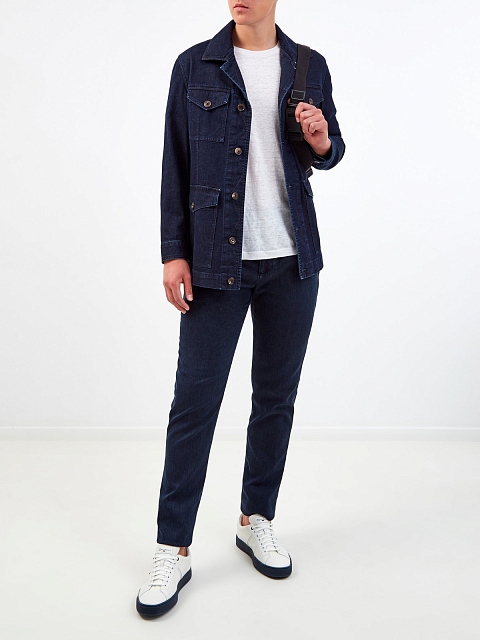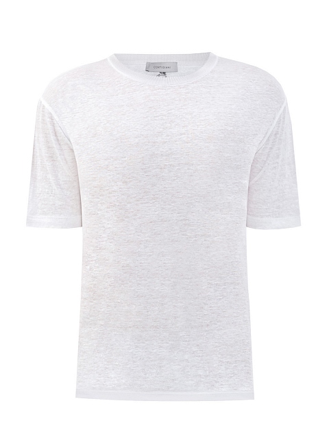 Легкая мужская футболка от Cortigiani выполнена из натурального льна в меланжево-белом оттенке. Дышащий материал с полностью натуральным составом идеально подходит для создания повседневных образов. Детали: круглый вырез горловины с эластичной отделкой, короткие рукава, простроченные швы. Сделано в Италии.