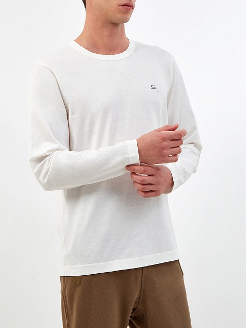 Базовый мужской лонгслив в универсальном белом цвете от C.P. Company. Минималистичная модель создана из натурального хлопкового джерси — дышащая и гигроскопичная ткань обеспечивает максимальный комфорт в движении. Детали: нашивка с логотипом, круглый вырез горловины, простроченные швы, длинные рукава.