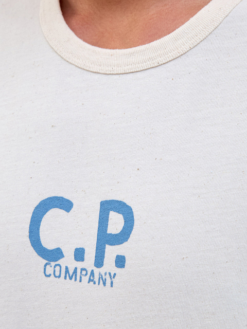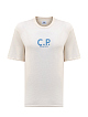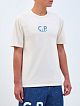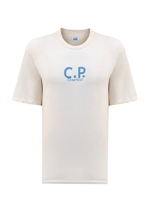 Мужская футболка в светло-песочном оттенке от C.P. Company. Минималистичная модель создана из натурального хлопкового джерси со слегка неоднородной фактурой — мягкая дышащая ткань обеспечивает максимальный комфорт в движении. Графические принты на передней планке и спинке подчеркивают динамичный стиль изделия. Детали: круглый вырез горловины с трикотажной отделкой, простроченные швы, короткие рукава.