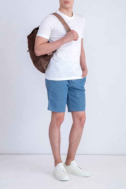 Базовая мужская футболка Eleventy облегающего кроя изготовлена из тончайшего дышащего хлопка белоснежного оттенка. Модель с круглым вырезом горловины и короткими втачными рукавами.