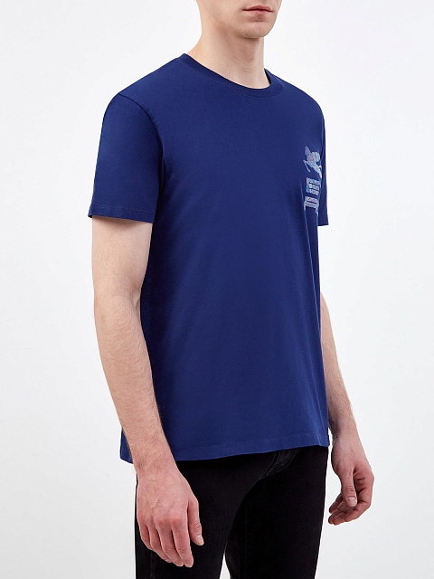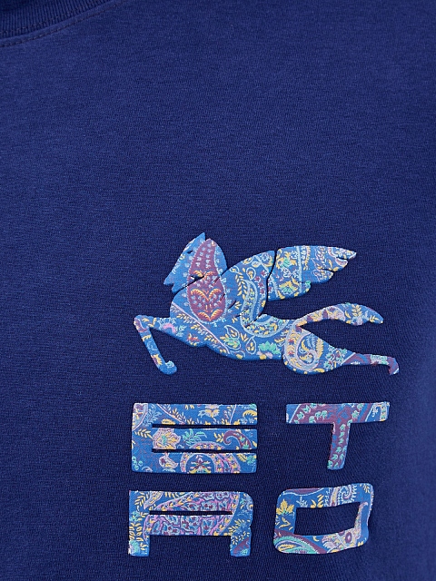 Мужская футболка-oversize от Etro выполнена из плотного хлопка в насыщенном синем цвете. Особенностью модели стала аппликация Cube с фирменным паттерном пейсли и изображением Пегаса — символа Модного Дома. Сделано в Италии.
