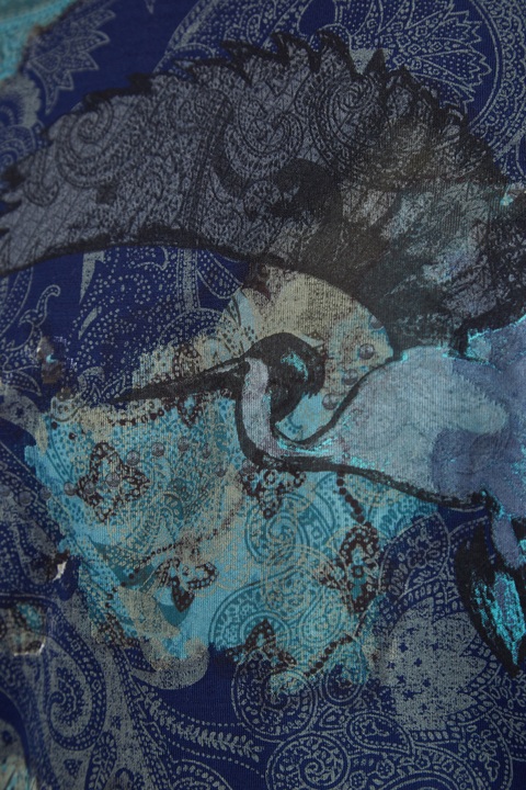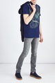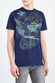 Футболка из хлопка оттенка индиго с аппликацией в стиле петчворк
